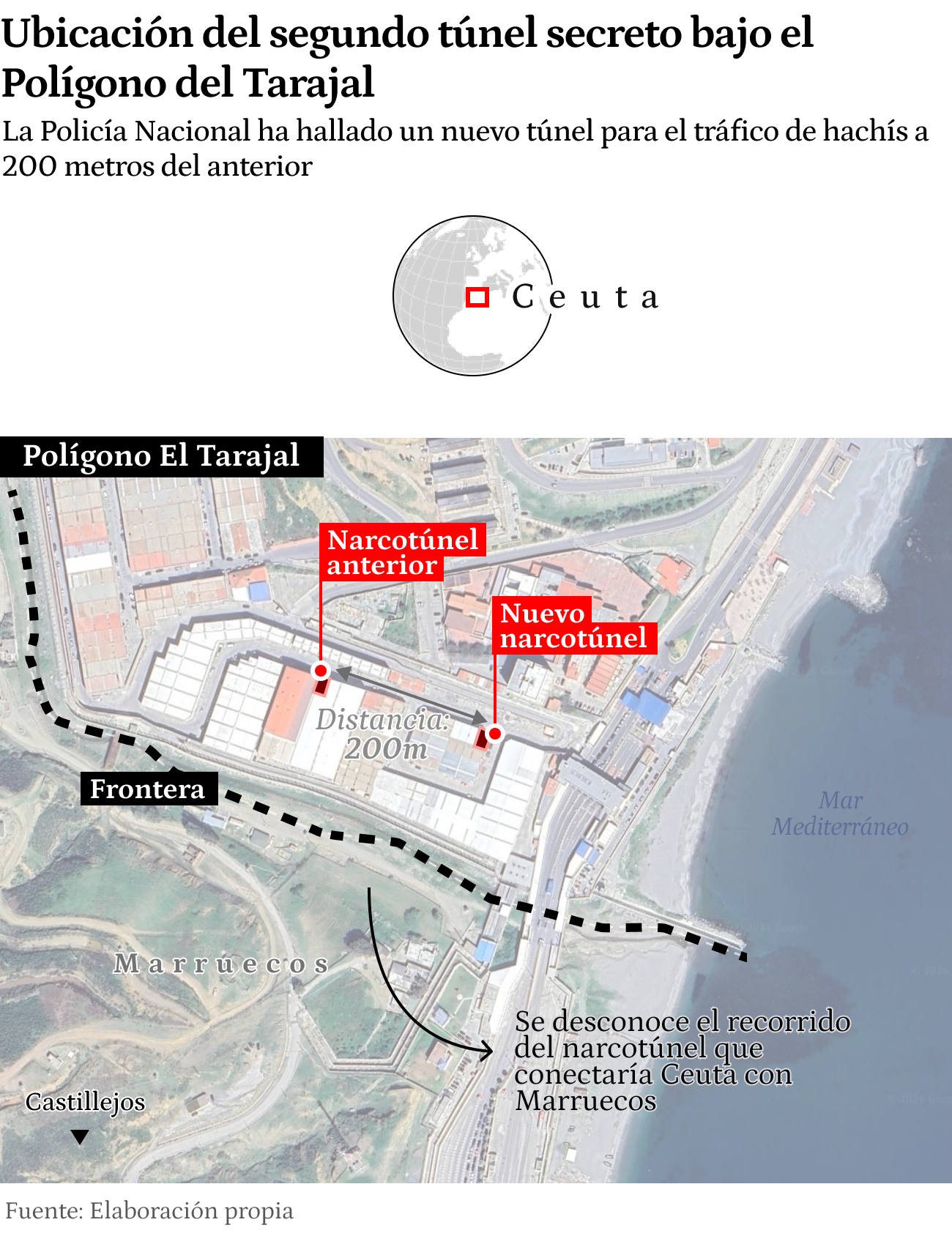 كشفت معطيات تحقيق أمني إسباني عن تفاصيل “نفق المخدرات” الذي استعملته واحدة من أخطر شبكات تهريب المخدرات بين الفنيدق ومدينة سبتة المحتلة، يقودها رجل أعمال مغربي ومهندس سابق بشركة “أمانديس” للماء والكهرباء والتطهير السائل يدعى مصطفى الشعيري البروزي، البالغ من العمر 45 سنة، والذي يُعرف بعدة ألقاب استعملتها الصحافة الإسبانية من بينها “مهندس الأنفاق” و“سيد الممرات السرية”. هذا الأخير، الذي ينشط في قطاع الفنادق، كان العقل المدبر وراء إنشاء نفقين سريين استُخدما كـ“طرق تحت أرضية” لنقل كميات ضخمة من الحشيش نحو التراب الإسباني.
