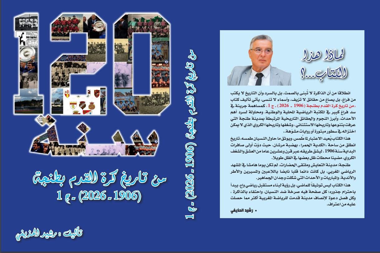 يضع الصحافي الرياضي رشيد الحذيفي اللمسات الأخيرة على مؤلفه المرتقب “120 سنة من تاريخ كرة القدم بطنجة (الجزء الأول)”، والذي ينتظر أن يرى النور قريبا بعد دخوله مرحلة مراجعة دقيقة للمحتوى وتدقيق المعطيات التاريخية. ويهدف هذا العمل إلى تقديم مادة موثوقة تحترم شروط البحث والتوثيق، قبل المرور إلى مرحلة التصحيح اللغوي لضمان جودة الإصدار النهائي.